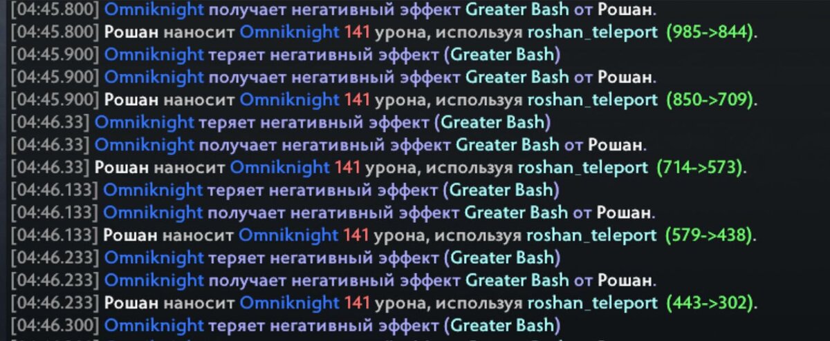 А это значит, что походка Рошана не отталкивает героя под Repel, но наносит урон. Вот только Рошан устроен так, что урон наносится как раз при столкновении моделек героя и Рошана. А раз герой не отталкивается, значит, он получает урон постоянно!