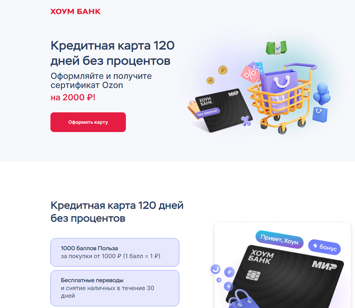 1000 ₽уб. по Бесплатной КРЕДИТНОЙ карте 120 дней без % до 700000 ₽ ХОУМ КРЕДИТ в 2024 г. +Беспл. Доставка