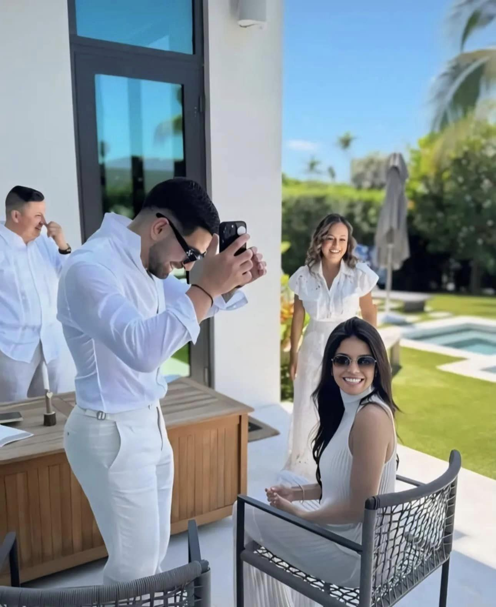 Для церемонии бракосочетания как невеста, так и жених были во всем белом.
