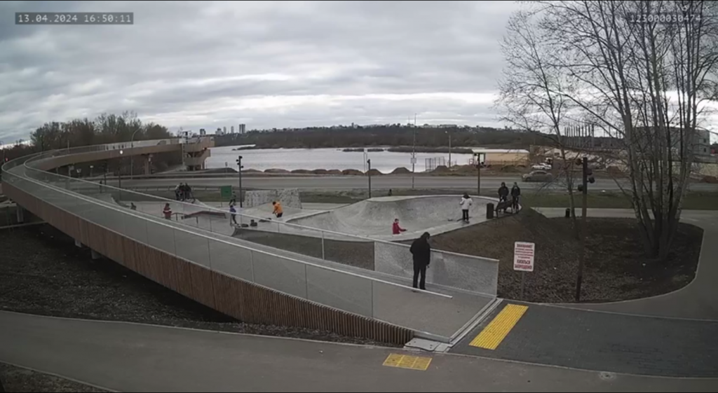 На записи видно, как молодой человек в темной одежде идет от памп-трека к мосту, достает из кармана некий предмет и разбивает стекло ограждения. При этом заметно, что соседний стеклянный блок уже поврежден.