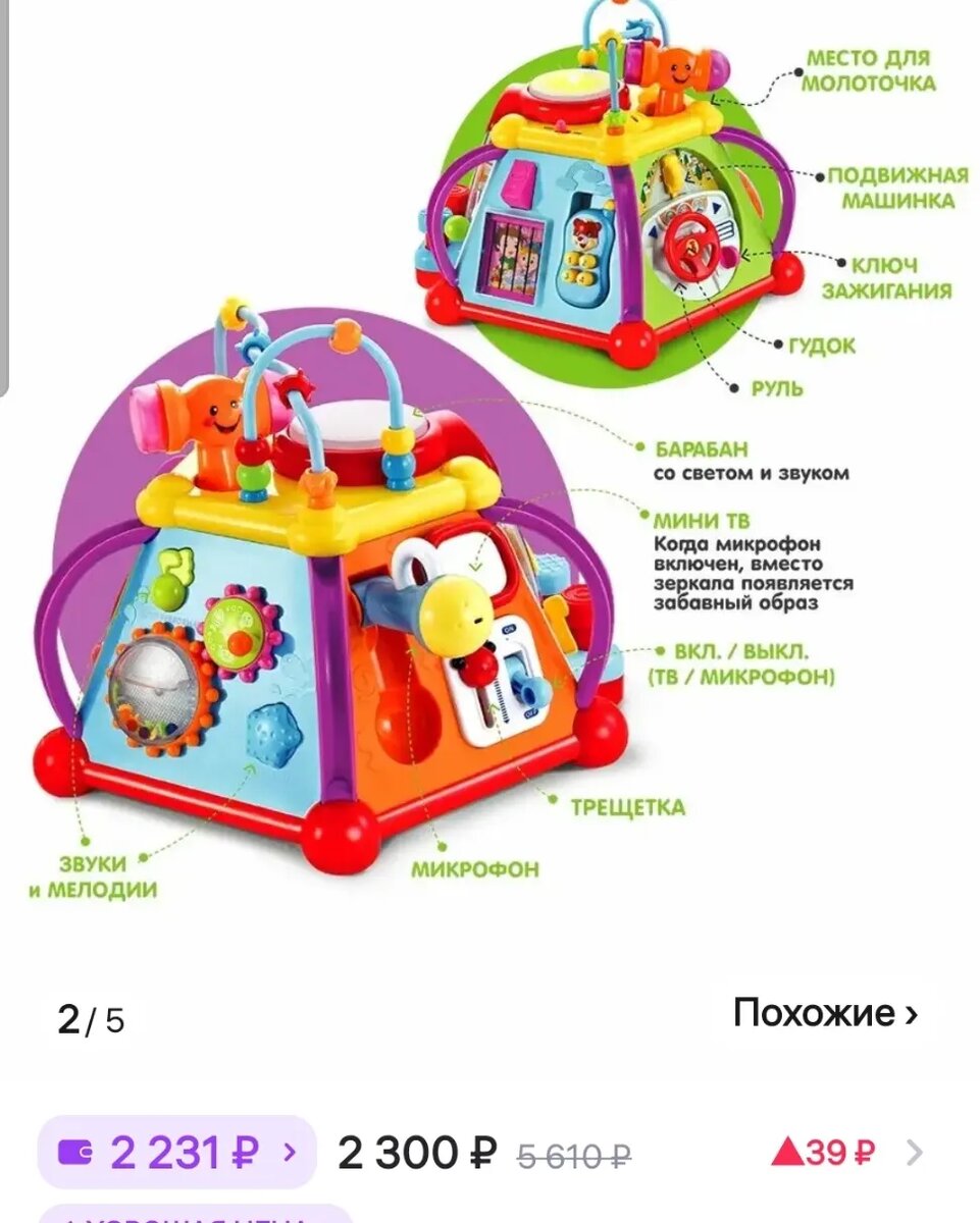 Ещё пару слов про подарки, которые уже не подарки. Прошу вследующий раз дарителей заранее говорить, что нужно вернуть, в каком виде, в каком количестве те вещи, которые подарены именно вами, а не покушаться на то, что покупала я на свои деньги и вы в них не вложились не капельки. Называется везде по разному, но общее у всех одно - Многофункциональный игровой центр. Нет, вы не ошиблись, это не бизиборд и не бизидом (который я планирую подарить сыну на год - цена примерно 3300-3500), у этого центра цена варьируется от 1900 до 2300, где-то даже увидела цену в 8 тыс, видно у этих продавцов поехала крыша.. Не буду писать кто подарил, этот человек сам прочтёт и может быть что-то поймёт. Ведь его же подарок забрала к ним его же родня, который пойдёт по его родне, так же и стул (позже об этом напишу). Хоть я и выставляла на продажу, но спроса на эту игрушку не было, и лежала она все это время в шкафу. Играли недолго, так как пока интереса вначале не вызывал, можно постучать, что-то пилика