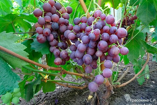 Неплохой виноград, выращиваю его пятый год, но уже получаю хорошие урожаи. Ягоды очень сладкие и насыщенные виноградным ароматом. Формирую стебли по типу веера, смотрятся кусты очень декоративно.