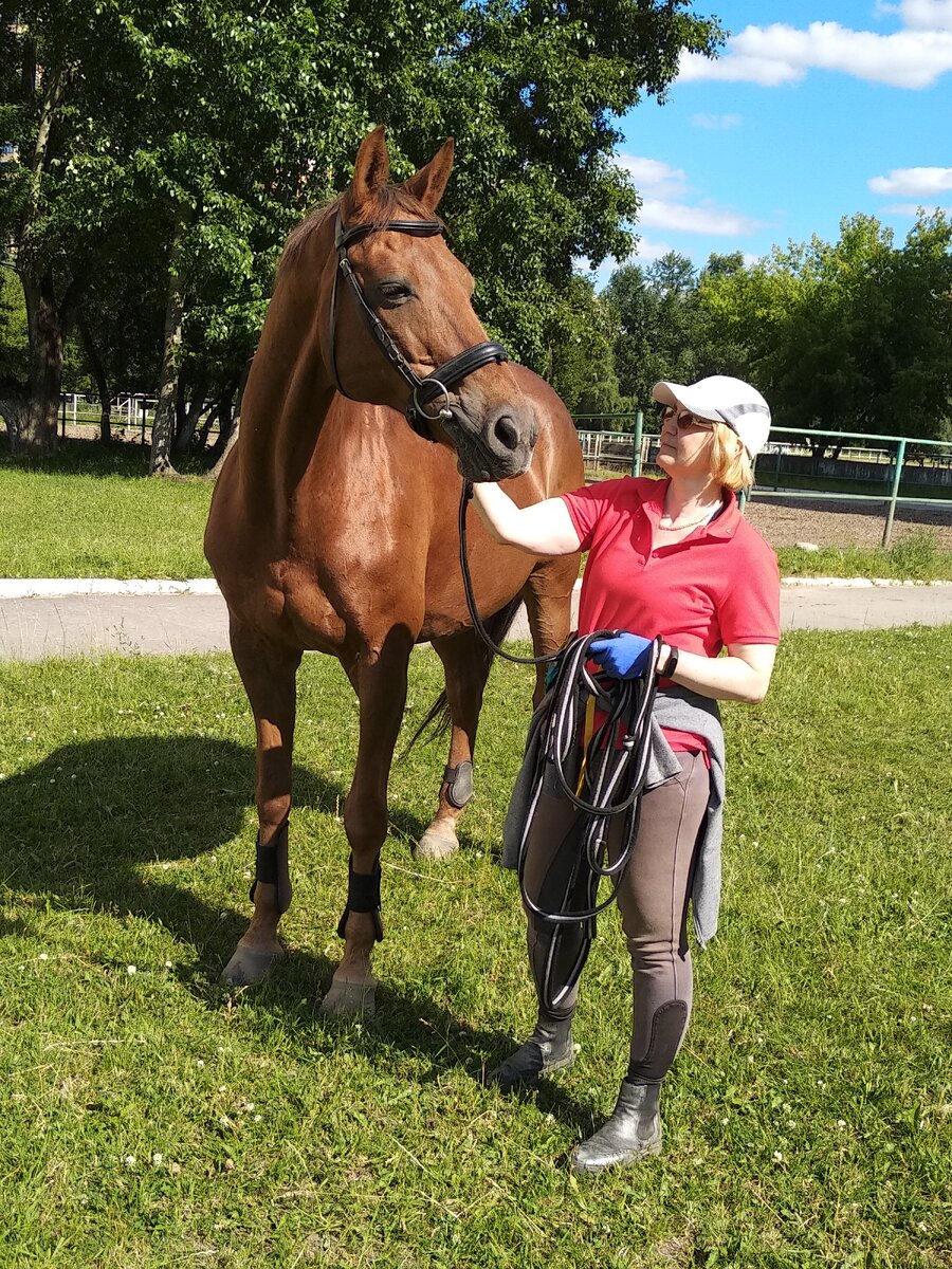 Ездили мы там в сменах (смена - это на спортивном языке группа из нескольких всадников, едущих, как правило, один за другим) по лесу с инструктором на разнотипных лошадках - был там и тяжеловоз, и буденовец, и другие породы и помеси. Группы состояли в основном из начинающих (надо сказать, что групповыми поездками в лес балуются как раз начинающие конники), и с лошадьми не все справлялись должным образом, в том числе и я. И моя кобыла (советский тяжеловоз Галька, я ее хорошо помню) в жаркий летний день решила зарулить, не спросясь моего мнения, в один из кузьминских прудов, чтоб освежиться. Моих управленческих навыков хватило, чтоб не дать ей лечь в воду совсем, но помакались мы знатно, в стиле "баба сеяла горох". Лошадь была мокрая по брюхо, и вода налилась мне в сапоги. Когда возвращались обратно, девочка-инструктор попросила меня не говорить начкону (начальнику конюшни) о происшествии, инструкторов за такие эксцессы ругали. Договорились, что я скажу, что лошадь сильно вспотела . Приехали, начкон удивилась, но удовлетворилась нашей версией, брюхо к тому моменту у лошади подсохло, но не высохла вода в моих сапогах... Я зашла за угол, не рассчитав, что окна из комнаты начкона выходят туда, и вылила воду из обоих сапог... глаза начкона, глядящей на это из окна, надо было видеть..."ничего себе лошадь вспотела" только и сказала она, конечно, обо всем догадавшись.