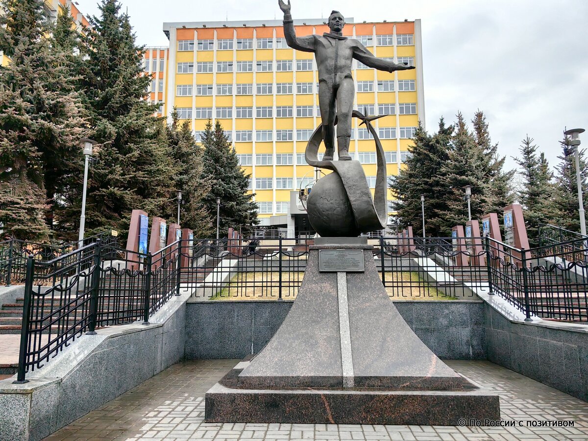Памятник Юрию Гагарину в Ижевске был установлен 20 апреля 2016 года, к 55-летнему юбилею полёта Юрия Гагарина в космос. Находится он возле завода «Аксион-холдинг». Видно его отлично издалека, хоть он и небольшой. Будете проходить, проезжать — посмотрите. Памятник непривычный. Здесь Гагарин изображён в скафандре со снятым шлемом, как бы шагая по ленте со звёздами, опоясывающей весь монумент. Таким образом автор символизировал земную орбиту. Здесь разбит небольшой уютный сквер, посвящённый космонавтам. Ижевский памятник Гагарину — копия аналогичного монумента, выполненного Анатолием Новиковым и установленного в подмосковных Люберцах. Там он стоит перед зданием училища. Комплекс в Ижевске строили поэтапно в 2015, 2016, 2018 и 2021 годы. Над изготовлением монумента, установленного в Ижевске, работал скульптор Павел Медведев. Также он рассказал на церемонии открытия о том, что ещё одна такая копия ранее была установлена в Лондоне. Мне понравился памятник. Можно прогуляться с детьми, расс