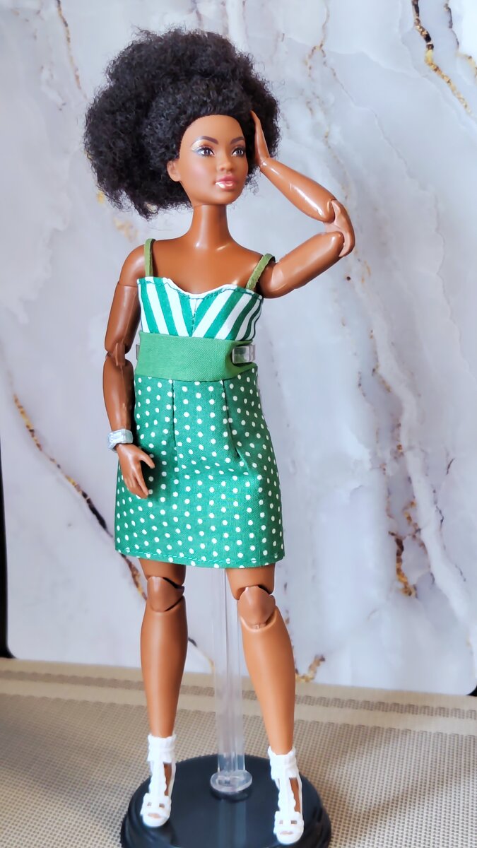 Продолжим наш модный показ обновок в лету. Ссылочка на первую часть в конце статьи Итак, набор номер 3 "зелененький" Наборчик из сарафанчика и брючного костюма на пышные формы Мариэль. Энджи тоже примеряла. Немного провокационный образ: вроде все прилично и брючки, и пиджачок. Но под пиджаком ничего нет. 😉 Даже красивого белья нет. (( вот тут у нас провал. Тоже нужно озадачится. Второй "пышечный" комплект синего цвета: платье и комбинезон с интересным кроем. Мини пышкам очень идет. Второй наряд больше подходит блондинке Энджи, но раз уж Мариэль пришла, надела на нее. Летний хлопковый комбинезон. Очень интересная модель. У меня у самой есть комбез с подобным кроем брюк. На пышных формах (какими и сама обладаю) смотрится очень хорошо. На этом новинки в гардеробе моих девчонок не закончились. Я заказала еще несколько комплектов и футболки парням. Они у меня явно обделены нарядами. Так что, продолжение следует. А первая часть модного показа вот тут по ссылке. Спасибо за внимание! Пишит