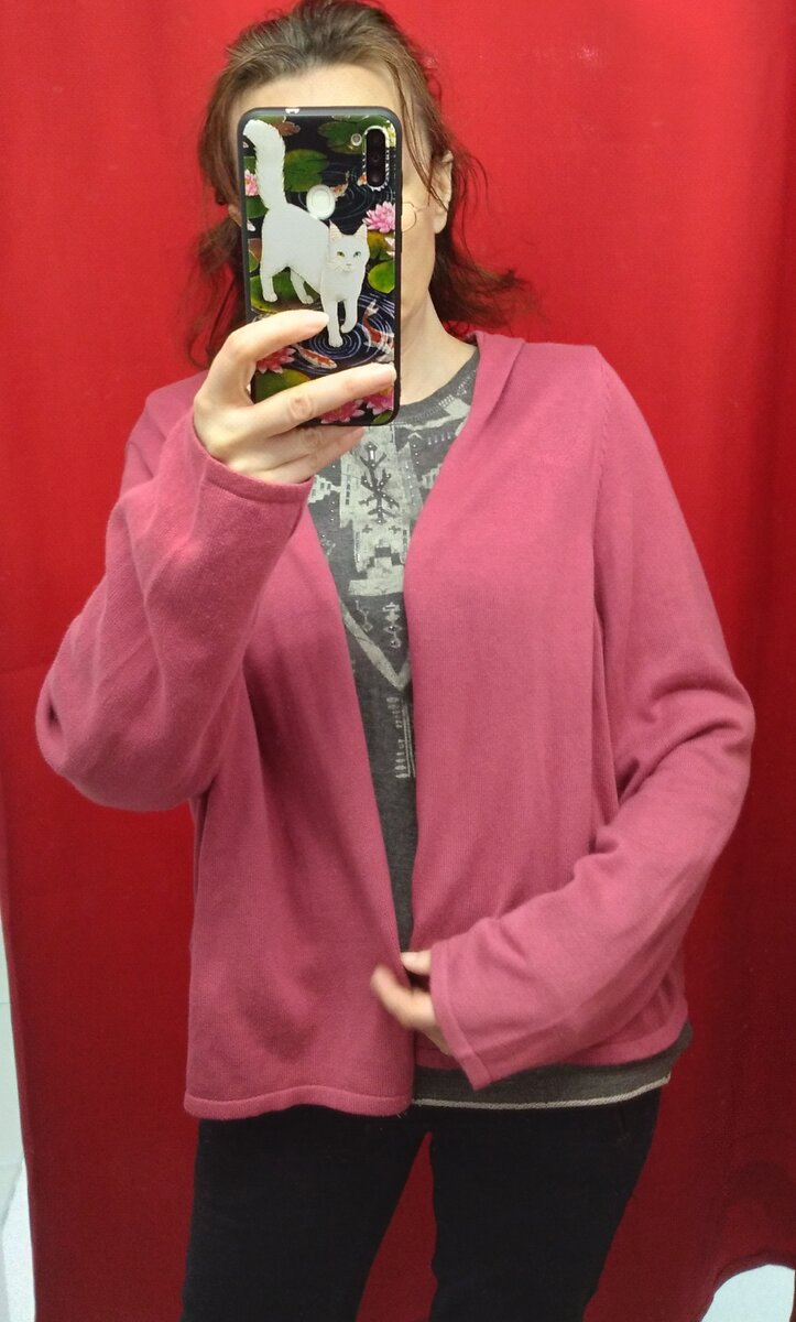 Здравствуйте. Я так торопилась на акцию "всё по 50 рублей", так бежала, почти летела. Но крылья мне обломали быстро(((. В 10 часов двери заветного магазина открыли и продавец сказала, что света нет и неизвестно, когда он будет. Я простояла 15 минут и ушла, не могу я ждать у моря погоды, есть другие дела. Пришла я на следующий день, так что обзор со второго дня акции. Очень грустный обзор, почти все разобрано, вешалки висят уже реденько, даже показать нечего. Фоток набрала только на два обзора. Что остаётся до самых максимальных скидок? А то что невозможно застегнуть, вещи без застежек плохо находят себе хозяев, все любят зачехлиться по полной)). Я тоже люблю это дело 😅 Кардиган присмотрела за приятный цвет. Тонкий и очень нежный трикотаж из хлопка. При желании можно придумать застежку)) Куртка бежево-желтого цвета. Ткань под кожу. По шву как отделка идёт металлическая молния, воротник-стойка и полочки укладываются в красивые складки. Сарафан длиной до колен. Чтобы ракурс фотки был