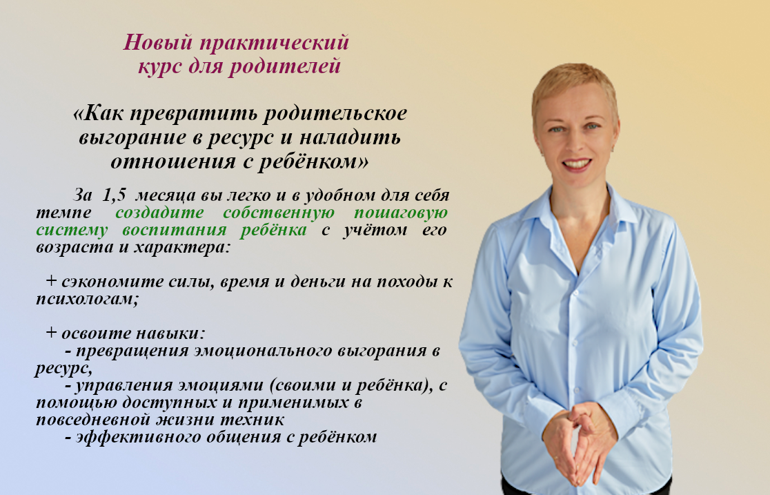 Я исполнила свою мечту двухлетней давности - создала курс "по детям". Общаясь на консультациях с уставшими от воспитания родителями и детьми, нуждающимися в понимании, я нашла ту точку соприкосновения, в которой и те, и другие могут наладить тёплые доверительные отношения! Слишком много информации о том, "как надо правильно воспитывать детей", создаёт путаницу и неуверенность в себе. А ведь всё, что делает любой родитель, делает из лучших побуждений! Делает так хорошо, как умеет, как научили в детстве. Но если посмотреть с другой стороны: Ведь и любой ребёнок ведет себя настолько хорошо, насколько может. Если получается иначе, значит не смог, не справился, не хватило опыта. Только взрослые детьми уже были, а дети взрослыми ещё нет. Нам надо быть мудрее и исходить из понимания, что дети тоже могут нас чему-то научить. Именно тогда и происходит этот удивительный момент доверия между людьми разного поколения. В результате каждый родитель создаёт собственную п
