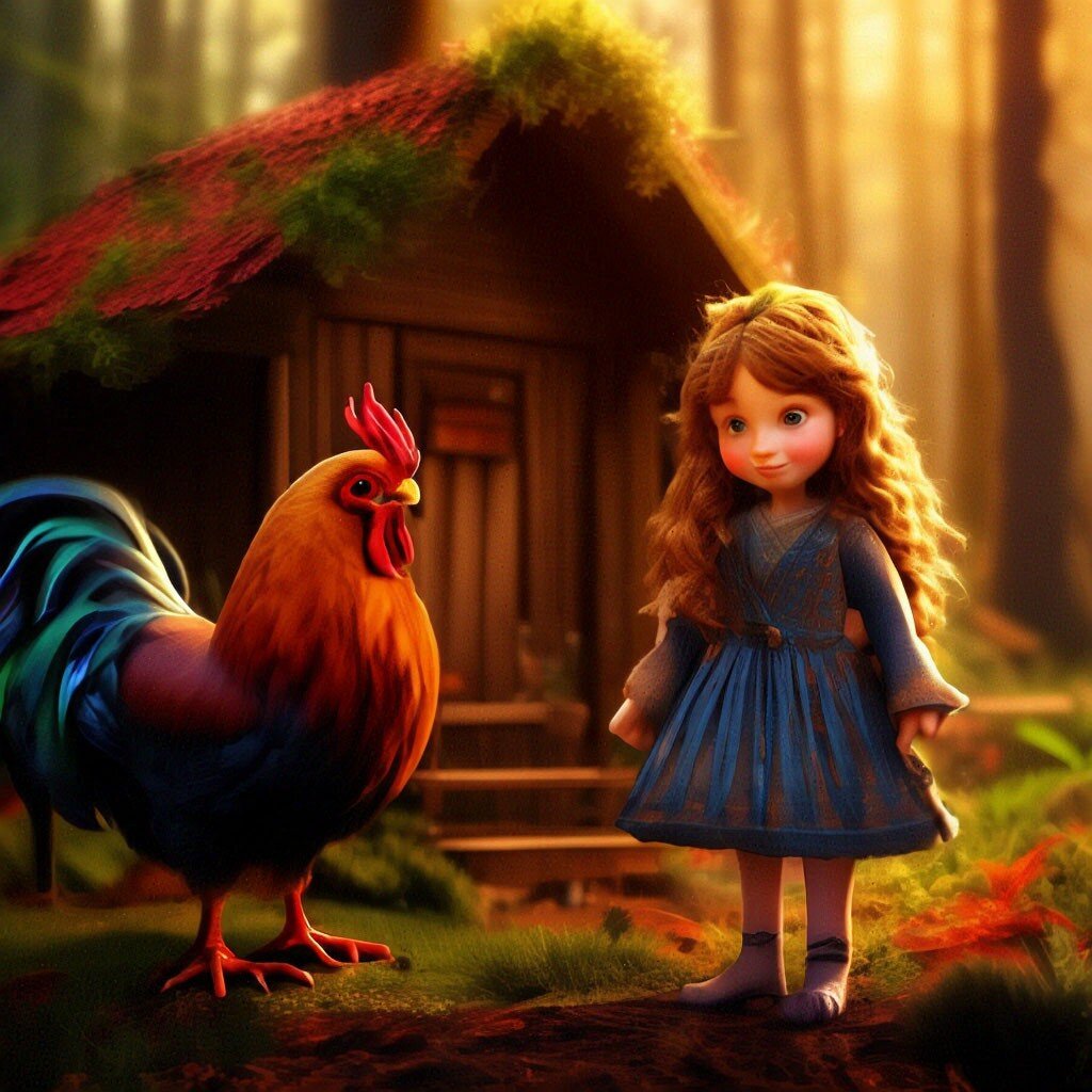 Давным-давно, в далекой стране, в сердце великого леса, стояла маленькая хижина. В ней жила девочка по имени Лили и ее верный друг - волшебный петушок по имени Чикчирик. Однажды, когда Лили проснулась рано утром, она услышала, как Чикчирик зовет ее к себе. Он сказал, что знает о тайне, которая спрятана глубоко в лесу, и попросил ее отправиться вместе с ним на поиски этой тайны. Лили поверила своему другу и они отправились в путь. Сначала они прошли через густой лес, где встретили разных животных, которые помогли им найти дорогу. Затем они наткнулись на волшебный пруд, где жили рыбы, которые пели красивые песни. В конце концов, Лили и Чикчирик пришли к огромному дереву, которое скрывало тайну. Вокруг него были расставлены камни с загадками, и Лили должна была разгадать их, чтобы открыть тайну. Лили была очень умна и быстро разгадала все загадки. В результате дерево начало светиться ярким светом, и из его корней вырос цветок, который мог исполнить любое желание. Лили пожелала, чтоб
