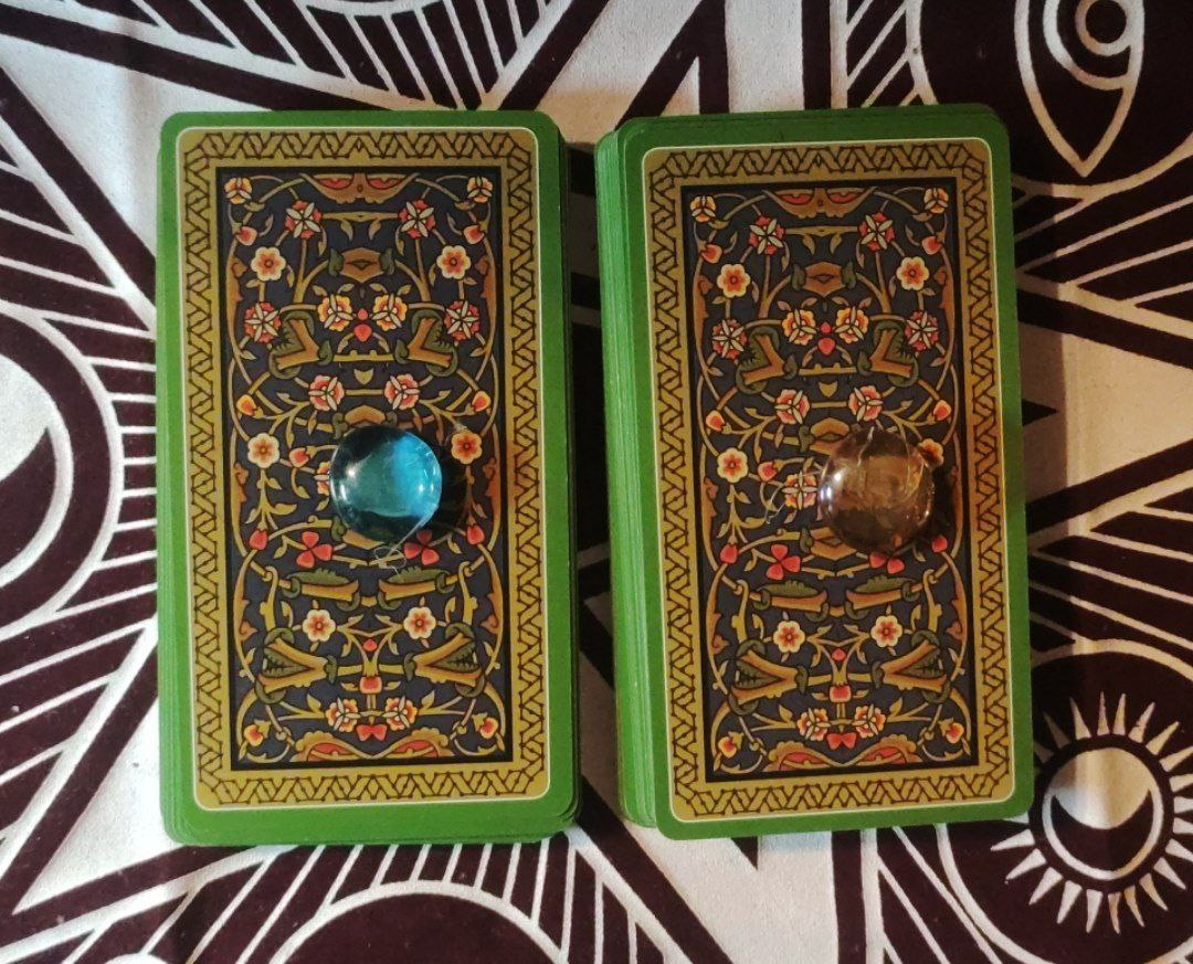 Сделаем два варианта данного расклада. Выбирайте вариант по колоде карт или по камушку: