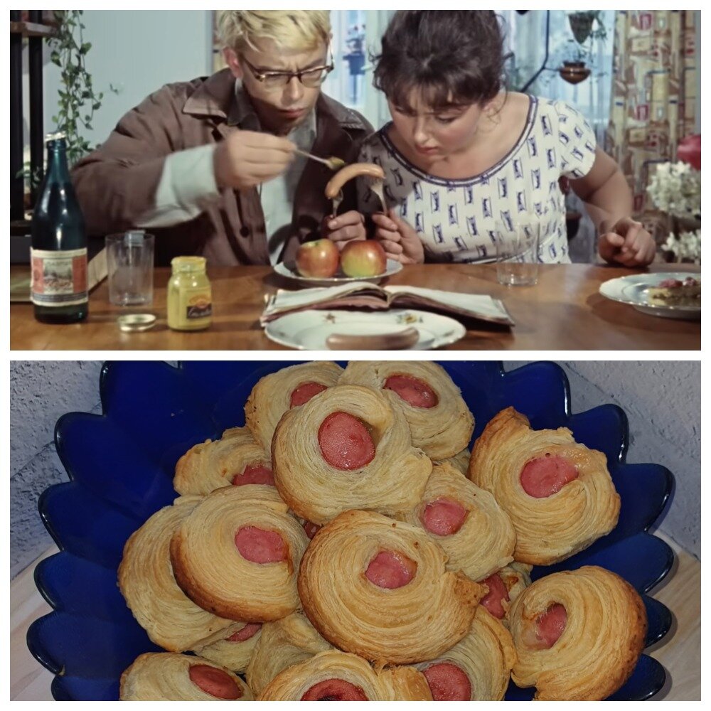 - И шестнадцать вилок, пожалуйста. 😂 Вообще сосиски – одно из базовых блюд студентов во все времена! Поэтому мы не могли обойти их вниманием при составлении меню для кинопраздника по мотивам фильма "Операция Ы". Лида с Шуриком, пока читали конспект, готовясь к экзамену, тоже их ели, между прочим! Но не подавать же гостям просто сосиски? 🤔 А сосиски в тесте, например - это же слишком сытно для закуски? Так сами собой у нас получились вот такие забавные закусочные "шайбы". 😁 Для приготовления потребуется только 4 сосиски и 500 г замороженного бездрожжевого теста (квадраты).