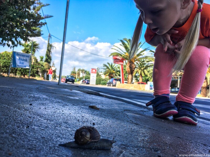 Дата: 9 марта 2019 Поездки продолжаются! Для затравки выкладываю несколько мгновений из нашей прошлогодней поездки на остров Крит. Было два пасмурных дня подряд... ночью штормило, шёл дождь. И внезапно наутро восхитительная погода. Немедленно отправляемся на разведку. О, боже! Орды улиток выползи отовсюду: Поразительно, но в эту поездку мы фотографировали исключительно телефонами. За пару погожих дней без солнца мы успели соскучиться по пляжу. Тем более, что мы так намотались по всему острову, что захотелось "овощной" день. Алиса убежала плескаться в камнях: Что касается самого пляжа, то не назову его хорошим. Неудобный, узкий, камни, нет нормальных заходов в воду, но зато в пяти минутах от отеля. Тут мы были пару всего раз: А вот фотография с правильного пляжа. На правильных пляжах мы плавали и загорали все остальные дни: Следите за обновлениями. Скоро будет громадная заметка с тоннами фотографий всего нескольких дней из нашей поездки.
