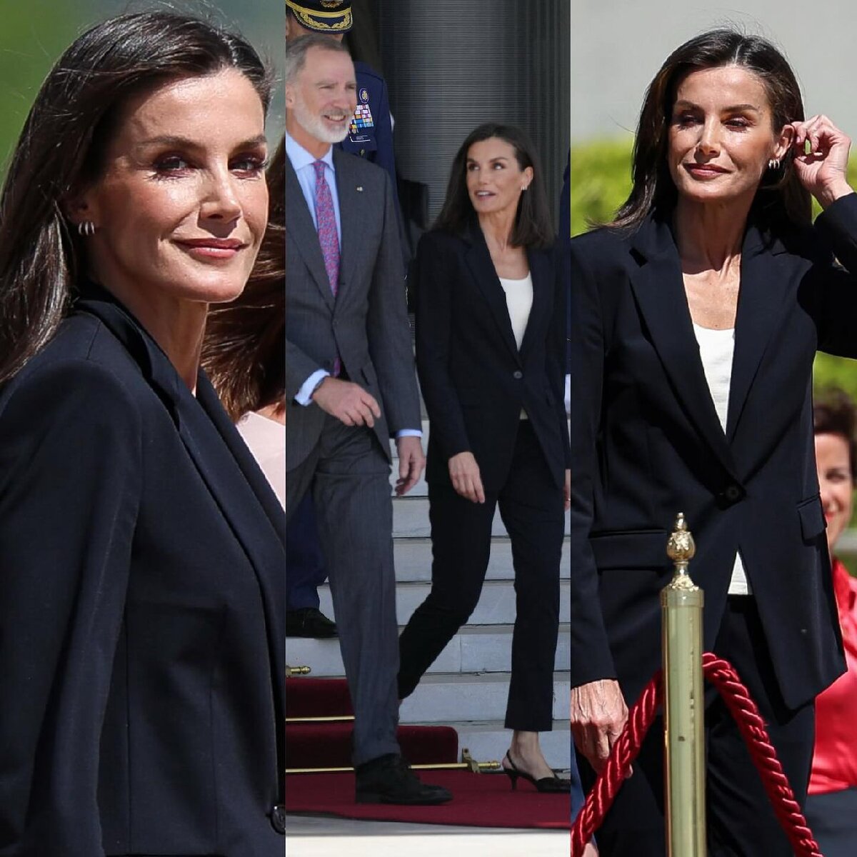 Но к этому моменту я ещё вернусь, а пока самое время обратить внимание на образ, выбранный королевой Летицией для прощания в аэропорту, – наряд, состоящий из строгого черного костюма и новых туфель на каблуках от Massimo Dutti.