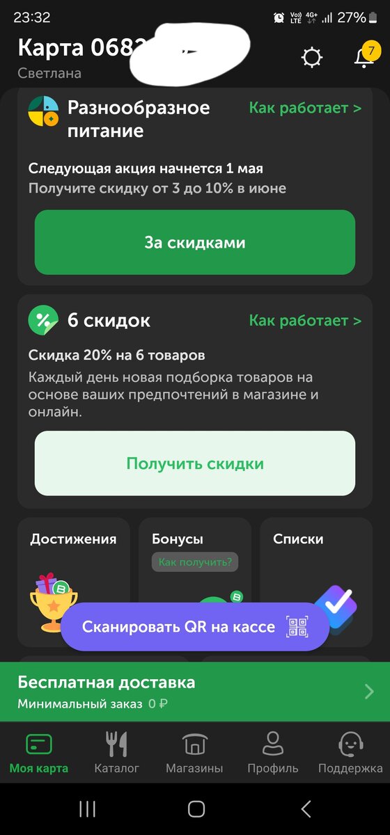 Приветствую всех друзья! Делюсь с вами лайфхаком. Магазин Вкусвил. Объект внимания торт "Шоколадная нежность". Вкуснейший торт, шоколадный, тонкий бисквит пропитаный сиропом и между слоями много шоколадного крема. Крем взбит и очень нежный. Весит тортик аж 500 гр. Хватает на пять средних порций. Стоимость 540 руб. Я же купил за 388 руб. И это не с истекающим сроком годности. Рассказываю как. В приложении Вкусвила, на первой странице нажимаем плашку "6 скидок". Выпадают первые шесть продуктов со скидкой 20%. Их можно заменить ещё два раза. Это, конечно рандом, но любой торт выпадет обязательно. Добавляем его в корзину. Уже дешевле на 20%, но я то купил его со скидкой 30%. Откуда ещё 10%? Всё просто, на месяц вперёд я покупаю скидку 10% на все товары за 450 рублей, вообще она стоит 500, но так как на момент покупки действует предыдущая скидка, получается 450 руб. Есть товары, например мясо, на них она не распространяется. В общем, применяется она автоматически и с другими скидками су