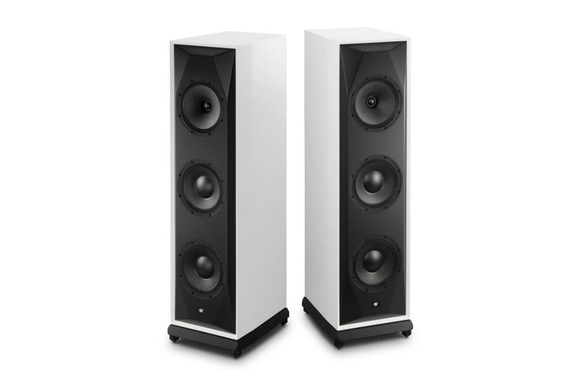 MoFi Electronics представила новинку в мире аудиотехники — напольную акустическую систему SourcePoint 888, разработанную известным дизайнером Эндрю Джонсом. Эта модель является продолжением успешной линейки SourcePoint и предназначена для удовлетворения запросов самой широкой аудитории любителей музыки. SourcePoint 888 оснащена тремя 8-дюймовыми динамиками, что отражено в названии модели. Два дополнительных вуфера, работающие на частотах ниже 130 Гц, освобождают коаксиально расположенный мидрейндж-динамик от воспроизведения басов, позволяя ему более точно передавать средние и высокие частоты. Конструкция новых вуферов включает использование двойных противоположных неодимовых магнитов и короткой катушки в длинном магнитном зазоре, что обеспечивает равномерное магнитное поле и, как следствие, точное управление движением конуса. Каждый из динамиков размещен в оптимально размеренной изолированной камере, что добавляет жесткости к конструкции корпуса и уменьшает резонансы. Акустическая сист