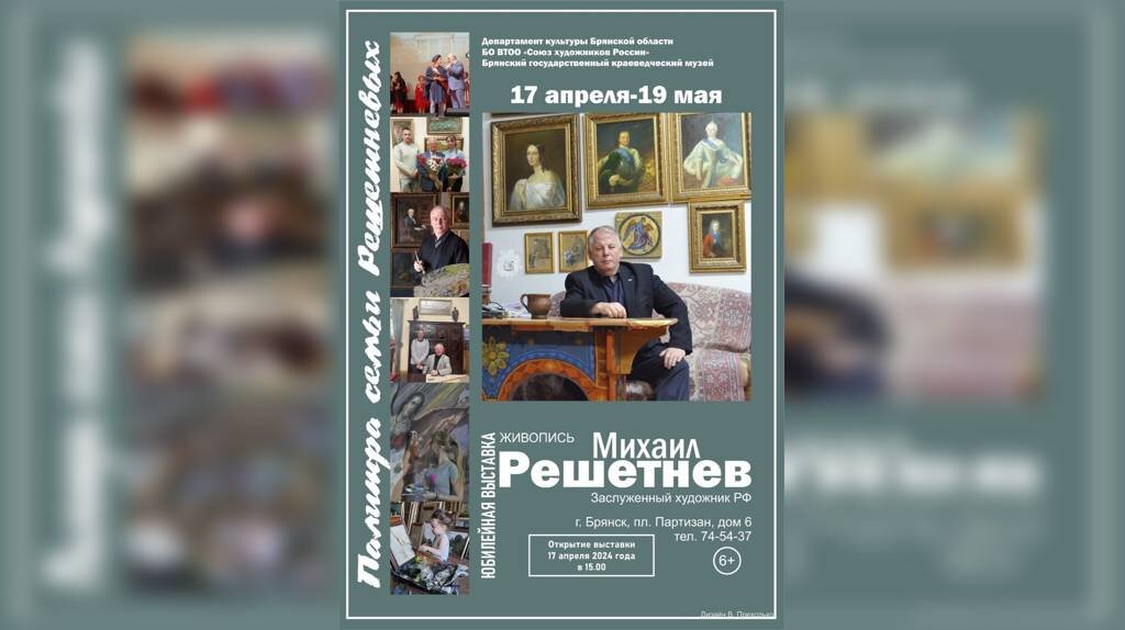 В брянском краеведческом музее 17 апреля состоится открытие выставки живописи «Палитра семьи Решетневых». В экспозиции представят работы основателя династии - заслуженного художника России Михаила Решетнева, художника-реставратора Юлии Решетневой и члена молодежного союза художников Александра Решетнева. Выставка откроет гостям путь в творческий мир этой семьи и позволит глубже понять их индивидуальный стиль, технику и вдохновение. Каждый из Решетневых обладает своим уникальным стилем и подходом к творчеству. Их работы отличаются проникновенной любовью к Родине. Выставка продлится до 19 мая. Возрастное ограничение: 6+ В Брянске откроется выставка живописи «Палитра семьи Решетневых»