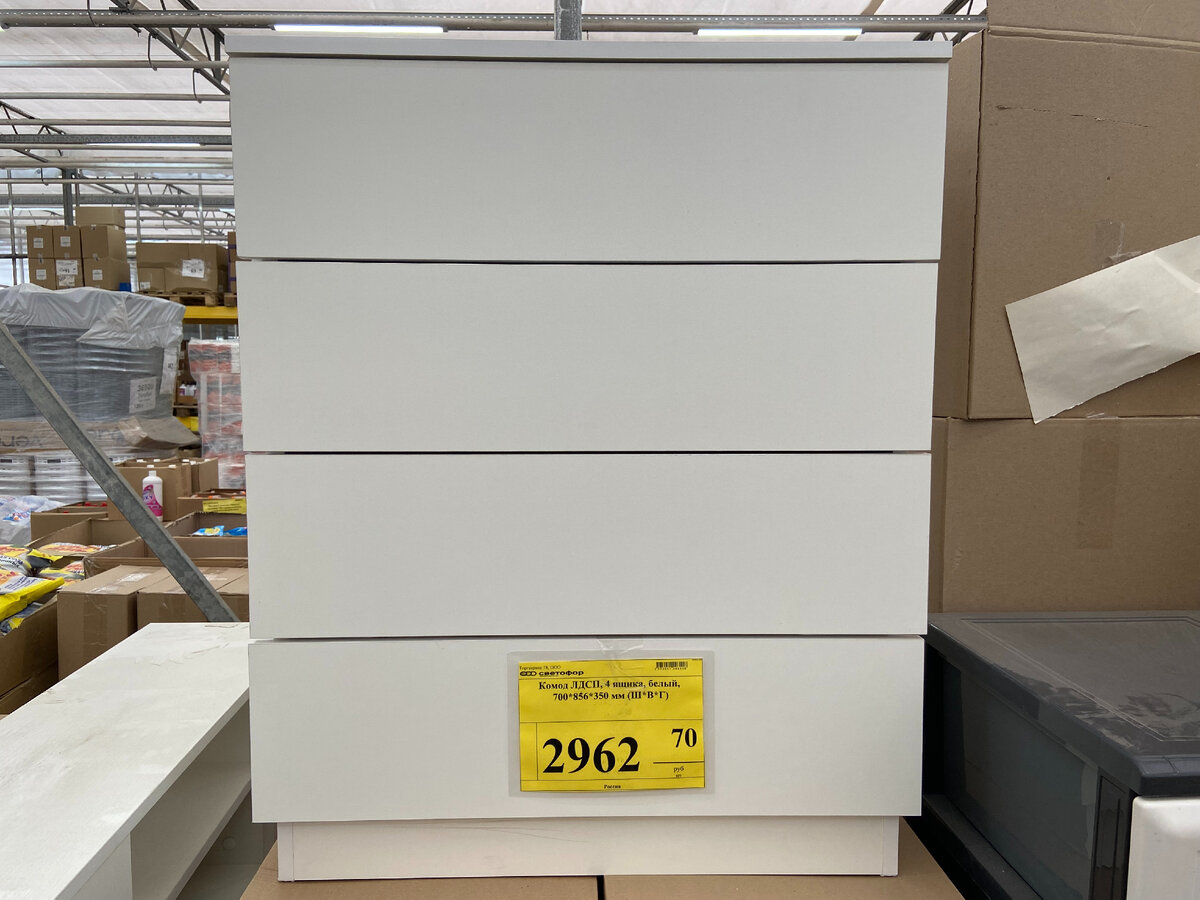 Этот комод сделан аккуратно, из хорошего пластика с приятной на ощупь матовой поверхностью. У него качественная фурнитура (колёсики), приглушённый серый оттенок не создаёт визуального шума. На Озоне цена на этот же комод этого же производителя начинается от 1800, в Светофоре он стоит 1400 рублей.