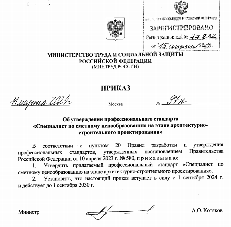 Вышел в свет профстандарт "Специалист по сметному ценообразованию на этапе архитектурно-строительного проектирования":