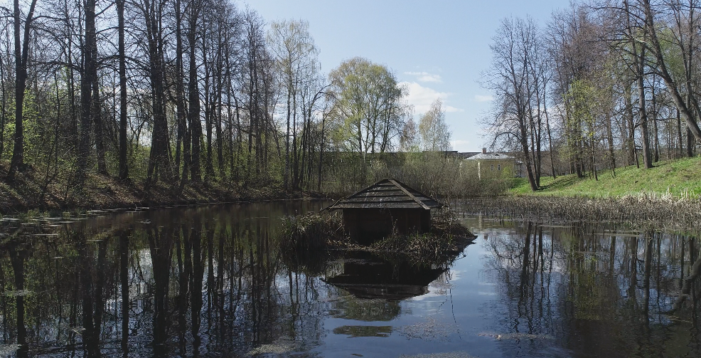 ЗОЛОТОЕ КОЛЬЦО РОССИИ г. Переславль-Залесский. ГОРИЦКИЙ УСПЕНСКИЙ МОНАСТЫРЬ. В середине XVIII века для "предосторожности от пожарных случаев" в монастыре был выкопан пруд, который заполнялся водой по трубам, проведенным от водоёма за стенами монастыря. на фото: монастырский пруд летом. Кадры из документального фильма "Свой путь" (реж. О. Бородина, операторы М. Бородина, А. Мельников, продюсер Ю. Бабаханов. © ООО "Б.У.Б.А. Арт" 2020).