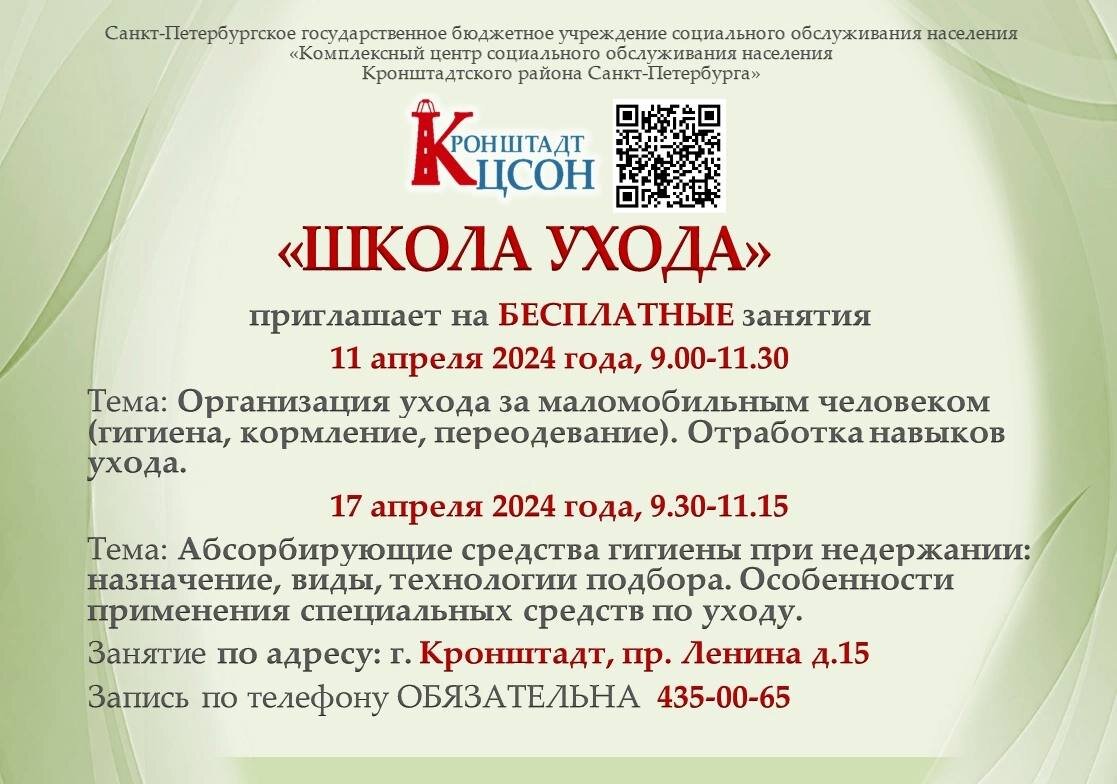 🔸11 апреля 2024 года, 9.00-11.30 Тема: Организация ухода за маломобильным человеком (гигиена, кормление, переодевание). Отработка навыков ухода. 🔸17 апреля 2024 года, 9.30-11.15 Тема: Абсорбирующие средства гигиены при недержании: назначение, виды, технологии подбора. Особенности применения специальных средств по уходу. Занятия по адресу: г. Кронштадт, пр. Ленина д.15 Запись по телефону ОБЯЗАТЕЛЬНА 435-00-65 #ШколаУхода #КЦСОНКронштадт #НеСиделки