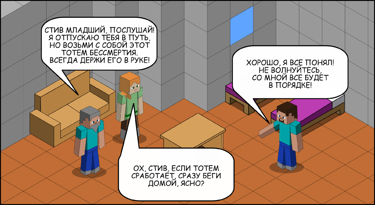 Комиксы по Minecraft с предысторией: тотем воскрешения, пчелы и древнее зло