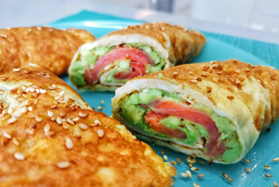 Молотый черный перец по вкусу ИНСТРУКЦИЯ ПРИГОТОВЛЕНИЯ 1.Подготовить ингредиенты. Дать рыбе немного полежать при комнатной температуре. 2.Кунжут выложить на раскаленную сухую сковороду. 3.Обжарить зерна до румянца, периодически помешивая. 4.Яйца разбить в кружку. 5.Добавить соль и перец по вкусу. 6.Перемешать яичную смесь. 7.Авокадо разрезать пополам. 8.Высвободить мякоть ложкой и выложить ее в глубокую миску. 9.Размягчить мякоть вилкой. 10.Добавить обжаренный кунжут и перемешать. 11.Яйца влить на раскаленную сковороду, смазанную маслом. Заходите чаще на наш канал! Каждый день новые и актуальные материалы и рецепты — не пропустите все самое интересное! Подпишитесь на канал в правом верхнем углу. ИНСТРУМЕНТ Сковорода алюминиевая 12Примерно через 3 минуты, как только схватится нижняя сторона, аккуратно перевернуть блинчик. ШПАРГАЛКА Таймеры варочных поверхностей 13Че