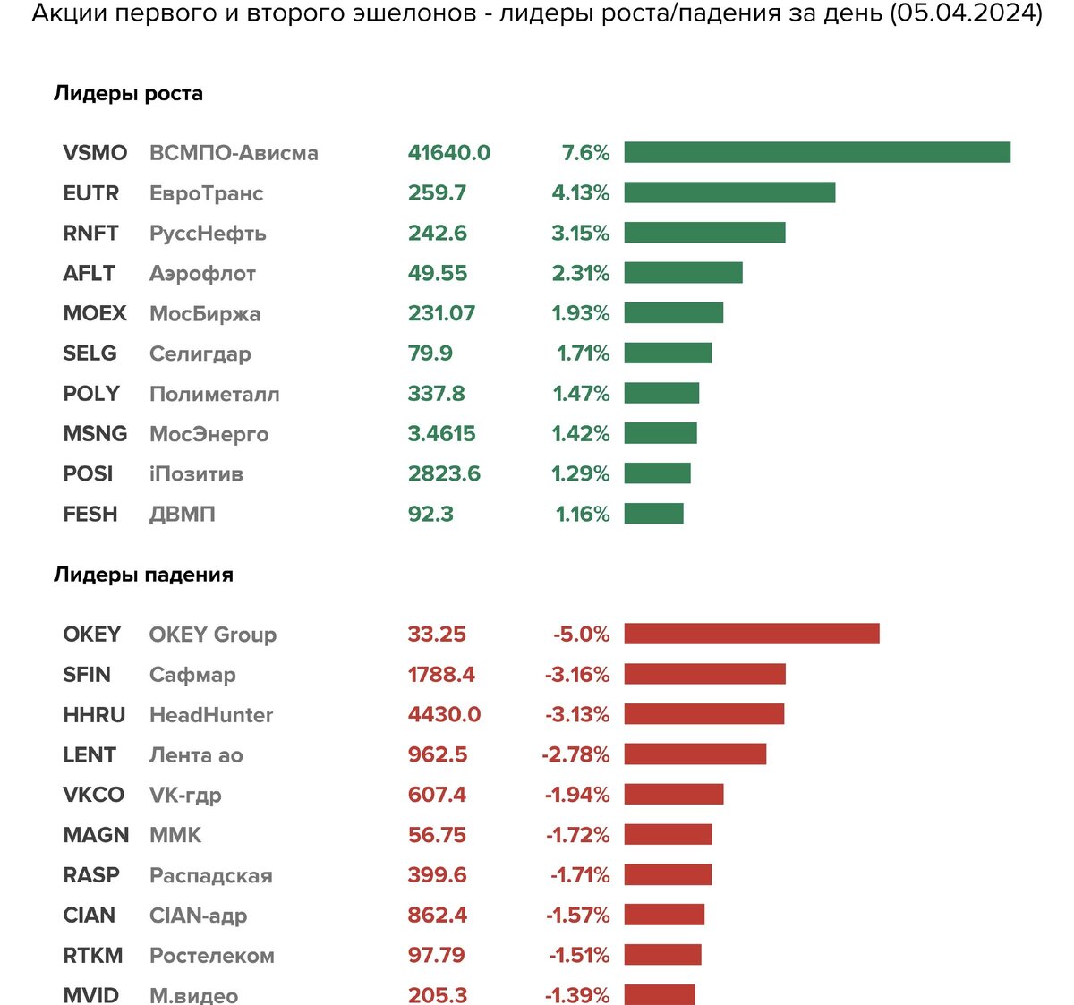 По итогам основной сессии 5 апреля индекс Московской биржи снизился на 0,25% и ушел ниже 3400 пунктов.