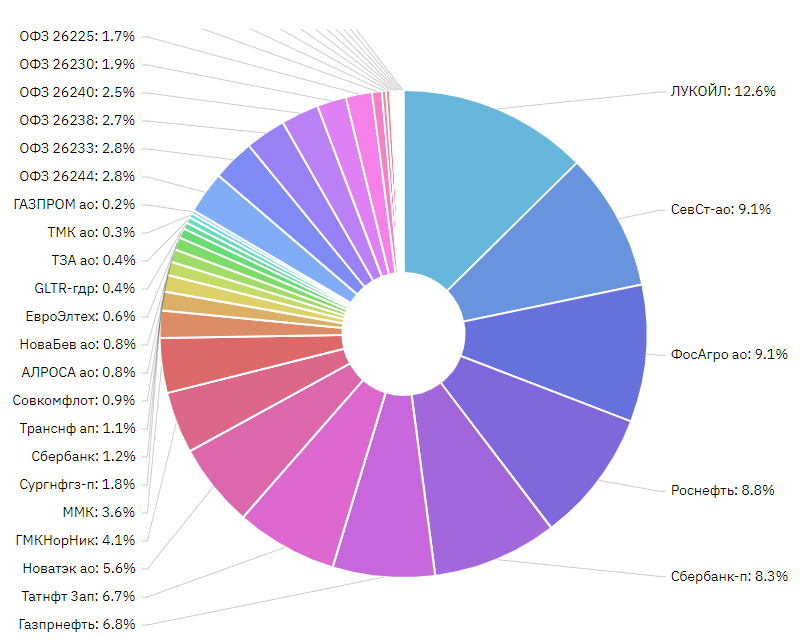 Для ведения портфеля пользуюсь бесплатной программой : ссылка Удобно для наглядности можно объединить портфели находящиеся у разных брокеров или разные счета одного брокера в общий. Общая сумма инвестиционного портфеля составила 737 498,51 руб 📌 За 2 года и 3 месяца было вложено 518 000 руб 🔥 Доход составил 219 498,51 руб из них: ✔️ Дивиденды и Купоны 81 498,51 руб ✔️ Рост стоимости бумаг 138 000 руб Дивиденды и купоны не вывожу а реинвестирую обратно в активы для работы сложного процента. ➡️ В этом месяце пополнил счет на 6 000 ₽ ✔️ Получил купоны по облигациям на общую сумму 874 ₽ ✔️ Продажи: ничего не продавал. ✔️ Покупки: Глобалтранс $GLTR 4 акции Туймазинский завод автобетононасосов $TUZA 1 лот (10 акций) Структура портфеля: ✔️Акции Нефтегаз 42.5 % Лукойл $LKOH 12.5 % Роснефть $ROSN 8.8 % Газпромнефть $SIBN 6,8 % Татнефть преф. $TATNP 6.8 % Новатэк $NVTK 5,6 % Сургутнефтегаз пр. $SNGSP 1.8 % Газпром $GASP 0.2 % Металлы и добыча 17.9% Северсталь $CHMF 9.1 % Норильский