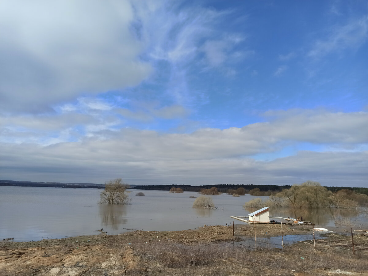 Каждое половодье собирался пройти примерно такой маршрут, но лишь этой весной наконец реализовал план. У Дракино за неделю вода поднялась до дороги вдоль новых кварталов к западу от села, так что пришлось аккуратно обходить за забором, благо что пока он из досок со множеством проходов между ними. В районе устья Протвы картинки не впечатлили, зато довольно быстро меня подобрал водитель в сторону Волковского. По дороге оказалось, что он приехал аж из Обнинска посмотреть половодье Оки. Мы очень тепло попрощались, и я отправился на долгожданную фотосессию.