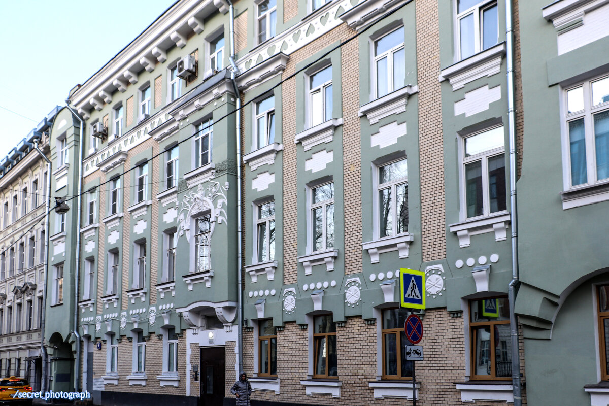 Это еще один доходный дом в стиле модерн, выстроенный в Лялином переулке. И выстроен на том самом месте, где с начала девятнадцатого века располагалась городская усадьба полковника артиллерии Николая Львовича Пушкина – родного дядьки Александра «Нашего всё» Сергеевича.