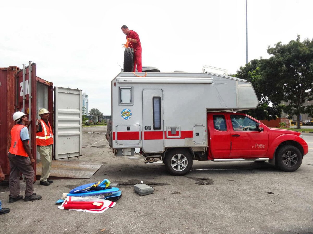 Казалось бы утопия, но нет. Есть автодома которые помещаются в морской контейнер. В России модули не очень популярны из-за компактных размеров внутри, высокой стоимости и штучного производства. Чаще всего их собирают небольшие фабрики и вручную. С другой стороны это очень универсальный вариант. Отправляясь путешествовать вы ставите модуль на машину, а когда возвращаетесь обратно - снимаете его и ставите штатный кузов пикапа обратно. Снять-поставить будку под силу одному человеку, но легче хотя бы вдвоем. На длительной стоянке модуль тоже можно снять, оставить в кемпинге и налегке кататься по окрестностям. В морской контейнер помещаются только небольшие автодома в классе вэнов и кастенвагенов, но эти ребята решили упаковать пикап с жилым модулем. Сложно себе представить как на своем автодоме можно оказаться например в южной Америке. Наверное рулетка вселила уверенность в этих ребят и у них всё получилось. Сейчас в России производят уже много различных модулей для пикапов, модно выбрать
