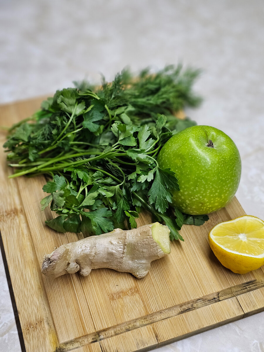 Приветствую всех спортсменов и любителей здорового образа жизни! Сегодня я представляю вам не только вкусный, но и невероятно полезный коктейль, особенно ценный для активных людей и спортсменов.. Для этого нам понадобятся всего лишь несколько простых ингредиентов: шпинат, петрушка, укроп, имбирь, лимон, и конечно же вода. Давайте начнем с шпината. Он Богат источником витаминов А, С, К, и минералов, таких как железо и кальций. Помогает укрепить костную ткань и поддерживает здоровье глаз. Содержит антиоксиданты, которые могут защищать клетки от повреждений. Петрушка имеет высокое содержание витамина К, который помогает здоровью костей и улучшает свертываемость крови. Содержит витамин С, который поддерживает иммунную систему и укрепляет кожу. Обладает антибактериальными свойствами и может помочь в борьбе с воспалениями. Укроп - хороший источник витамина А и минерала железа. Содержит вещества, которые могут помочь снизить уровень сахара в крови. Обладает противовоспалительными свойствами