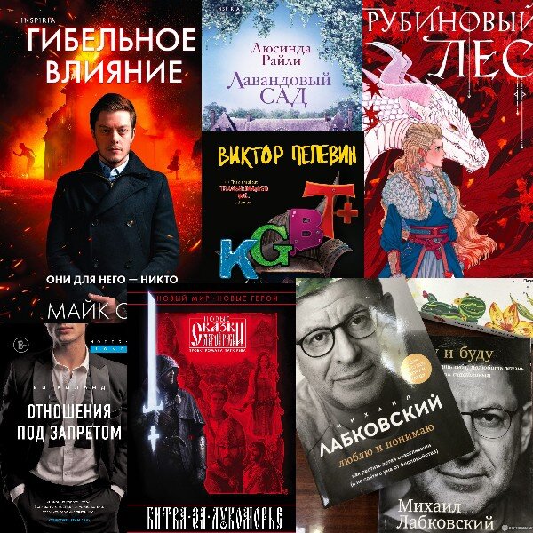 1 часть https://dzen.ru/a/Zg5ul0KsqWaO-C2k 2 часть https://dzen.ru/a/Zg-hMauzTTjiXXy2 Все, последняя часть весеннего завоза. «Рубиновый лес» Анастасия Гор История про дракона, которому поручили отомстить за своих, убив новорожденную принцессу. Он не справился, был пойман, а потом еще и проклят. Проклятье привязывало его к принцессе, дракон теперь мог летать только с ней в качестве наездницы. Понятное дело, что они прикипят друг у другу. И по сюжету им нужно будет вместе спасти людей от таинственного красного тумана. Мне очень не нравится такой тип оформления у «Эксмо». Я вообще не могу воспринимать книги с этими полумультяшными обложками. Видимо, я просто не ЦА таких книг. "KGBT+" Виктор Пелевин Перед прочтением, советуют прочитать книгу "Transhumanism inc", которая тоже была в одном из завозов Фикса. "KGBT+" – история успеха известного вбойщика, название книги = его псевдоним. Вбойщик – человек, который через свою деятельность вбивает какие – то идеи в головы масс. Пелевин простым не