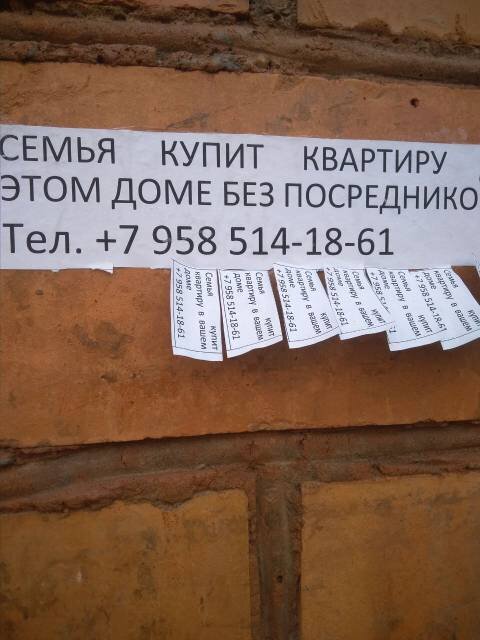 Сегодня я хочу поделиться недавним событием из моей жизни. 05.04.2024 года, возвращаясь с магазина, на входной части 8 подъезда дома, где я живу, увидел наклеенное объявление о приобретении жилья с указанием номера телефона: +7 958 514 18 61 на ранее очищенную и покрытую мной красящим средством кирпичную перегородку. В ходе разговора с владельцем вышеуказанного номера телефона мне стало известно, что данный гражданин расклеивал объявления там, где рядом были площадки. Проверку на предмет причастности к определенным действиям я по закону проводить не могу, но предполагаю, что данное объявление мог наклеить именно владелец аб.номера +7 958 514 18 61, так как, исходя из его ответа, было установлено, что он расклеивал объявления и сообщил о готовности приехать снять объявление, когда будет в моих краях (ну, то есть неизвестно когда). Нормальный человек, который видит входную часть подъезда в ухоженном виде, без расклеенных объявлений, со следами очистки, наверняка сразу поймёт, что