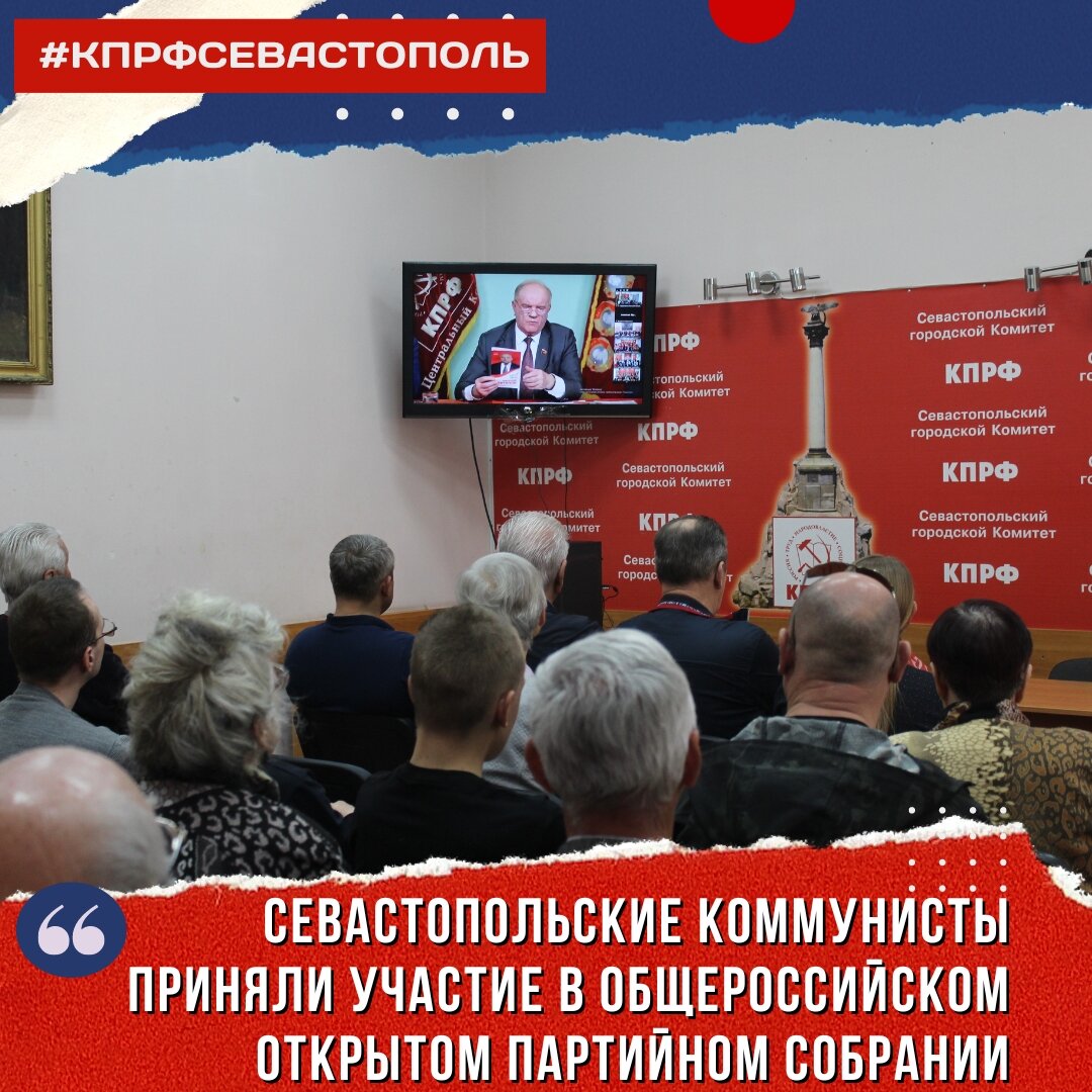 Без смены курса не будет победы! Под таким лозунгом сегодня прошло «Общероссийское открытое партийное собрание». На конференции Председатель ЦК КПРФ, Руководитель фракции КПРФ в Государственной Думе ФС РФ Г.А. Зюганов. Вместе с регионами подвел итоги и дал оценку прошедшим выборам также наметили план работы на ближайшее будущее. Запись видео доступна по ссылке: https://www.youtube.com/live/zCWSolwRTNk?si=Ck1WDwfHg1M96r03 #кпрф #севастополь #зюганов