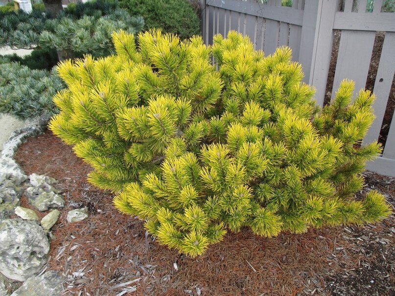 Сосна горная Голден Глоу (Golden Glow) идеальна в качестве элемента групповой посадки, но может высаживаться и не менее эффектно смотрится и как солитерное растение. Этот сорт прекрасно сочетается в различных композициях с иными хвойными культурами, сосна хороша как элемент альпинария, как часть верескового либо каменистого садика.