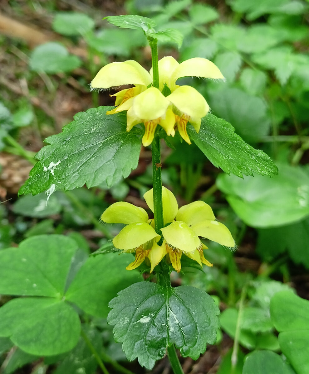 Сегодня у нас в гостях ещё один вид Крапивы - Крапива Золотистая. Другое её название Яснотка Жёлтая. На латыни- Lamium Galeobdolon. Хотя звучит это будто название динозавра, переводится оно не так страшно : "Пахнущий Лаской". Не думаю, что среди моих читателей найдётся человек, который сейчас воскликнет : "Я знаю этот запах!" Те, кто не нюхал зверька, аромат растения оценивают как смесь из ароматов лимона, корицы и камфоры. Внешне Золотистая Крапива, или Яснотка Жёлтая, выглядит почти также, как и Яснотка Белая. Тот же квадратный в разрезе стебель, такие же под прямым углом расположенные пары листьев. И обе этих Крапивы не имеют жгучих волосков лишь имитируя Крапиву настоящую. Правда, у Яснотки Жёлтой даже имитация получается хуже. Её листики имеют намного меньший размер и отпугивать травоядных пытаются ароматом. Золотистая Крапива - ползучее многолетнее полувечнозелёное растение. Во время мягкой зимы она сохраняет листья, там же где зима суровая, листья отмирают, появляясь вно