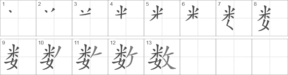 44) 数 shù – число, счет; shǔ – считать, подсчитывать, перечислять