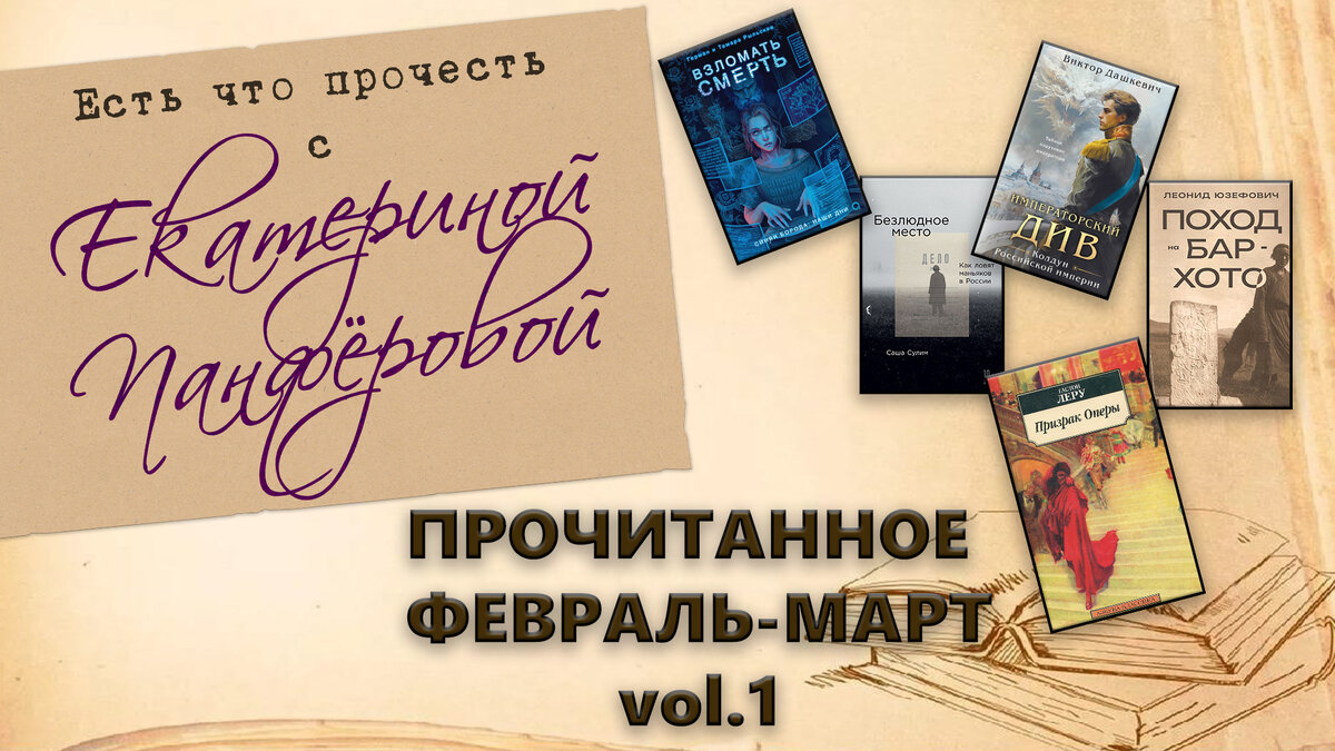 Всем привет! Сегодня я расскажу Вам о своих прочитанных книгах в феврале-марте, а точнее о части прочитанного. Книги были очень разные, даже появились совсем необычные жанры для моего канала. Книг было прочитано за эти два месяца много. Сегодня я вам расскажу о пяти из них. Предлагаю приступить к обзору этих книг. Поехали!