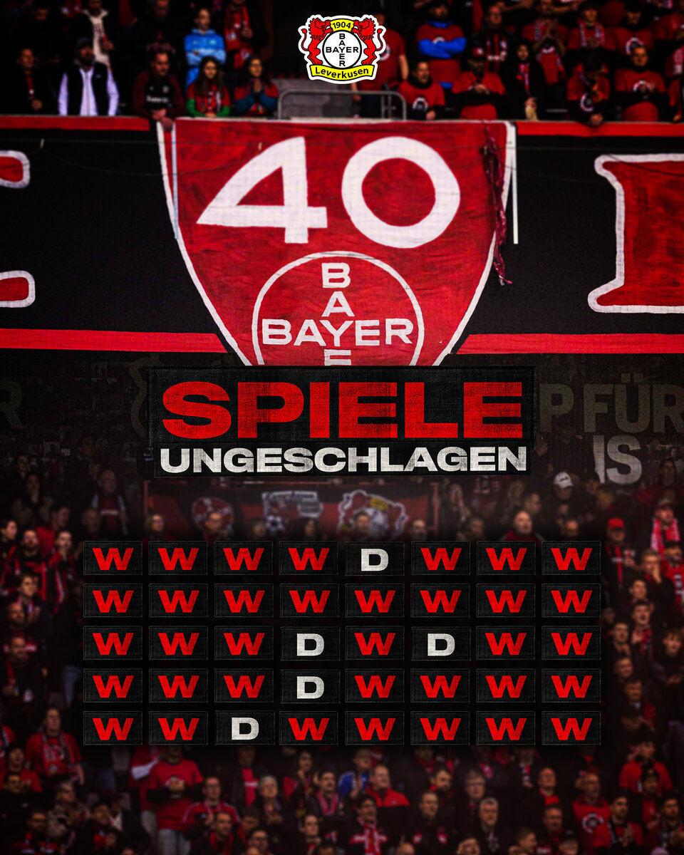 1) В этом сезоне Леверкузен выиграл 35 матчей и сыграл вничью пять из 40 матчей во всех соревнованиях.