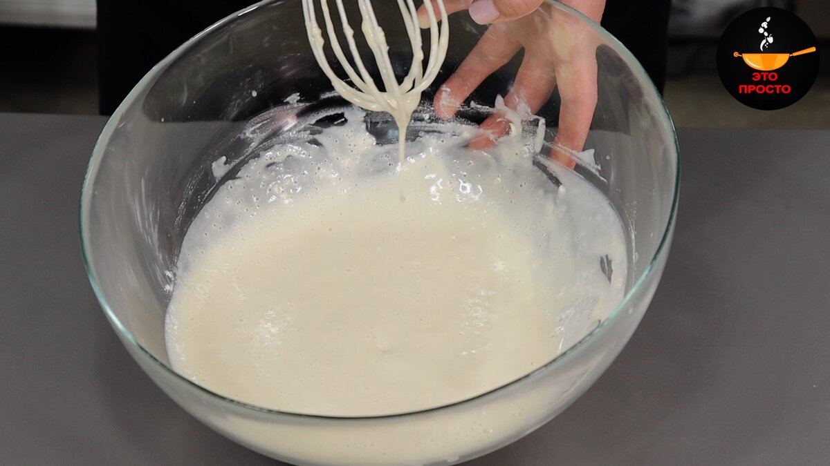 Перемешиваем венчиком до однородности, дрожжи должны полностью раствориться.