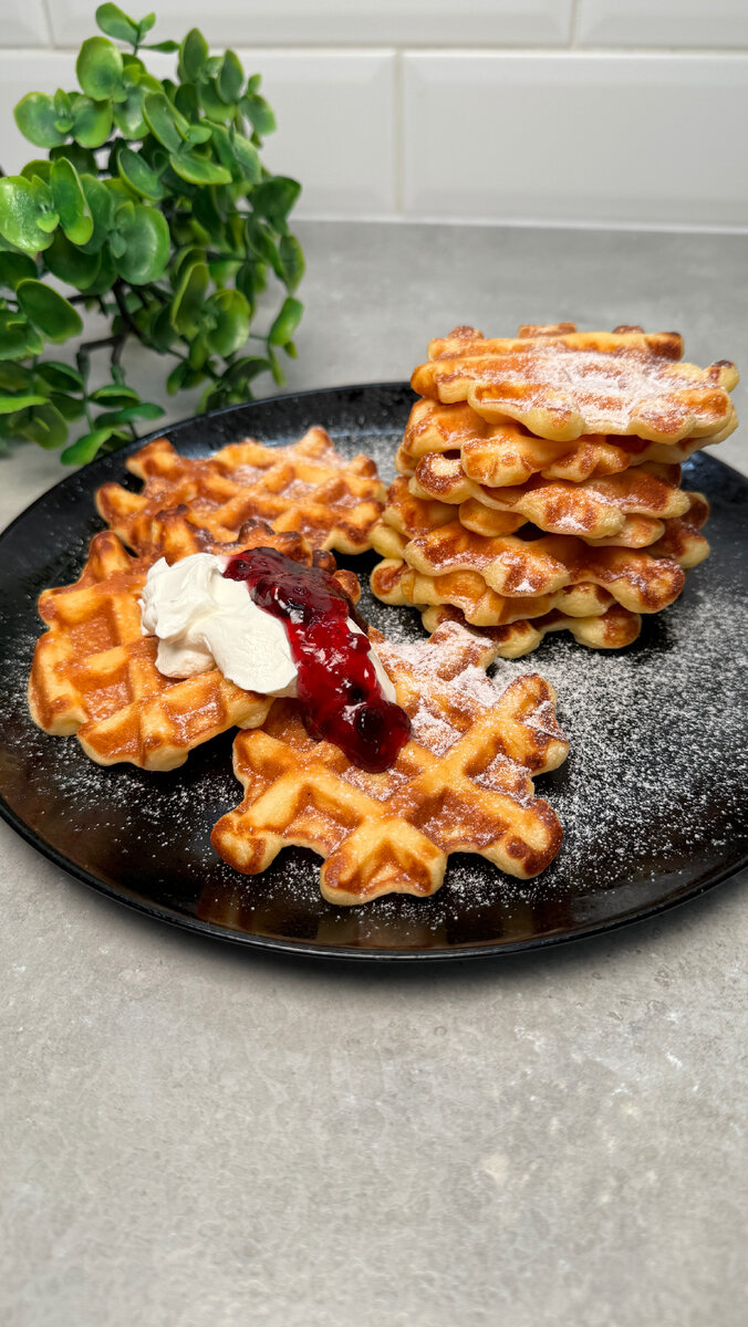 Ингредиенты: Приготовление: Соединяем творог, яйца, сахар, ванильный сахар и растопленное масло, перебиваем до однородности. Затем добавляем разрыхлитель и муку, перемешиваем. Жарим вафли до готовности, выкладывая по одной столовой ложке с горкой теста. Приятного аппетита!