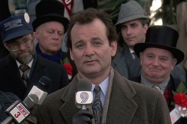 Как мне или Филу понять, что наступило завтра? Мы должны посмотреть, сравнить и сказать: «Что-то изменилось». А как узнать, что уже завтра? Сколько должно измениться, если мы в полярном дне? Вот медведь прошел, это уже завтра или еще нет? Мы все время должны держать какие-то бумажки и цыферблатики, чтобы не забывать, что времени нет. Что будет, если мы забудем про время? Кошки как-то живут. Я не видел, чтоб кто-то ходил с Потэк Филипом. Фил говорит: «Почему я не могу прожить вот тот прекрасный день на Гавайях?» Есть какой-то день. Он там. А сегодняшний день – это вообще не тот. Мы то знаем с вами из конца фильма, что прекрасный день может быть в любой момент. И Гавайи не нужны. И заметьте, что Рита ему сначала не нравиться. То есть я смотрю на вас, вспоминаю какую-то китаянку 20 лет назад и говорю: «Вот бы мне не вас, а китаянку». Так где же был тот день? Конечно у него в голове. Нигде никаких других дней нет. Вне нас нет никакого мира. Нет хороших событий и нет плохих. Квитанций за кв