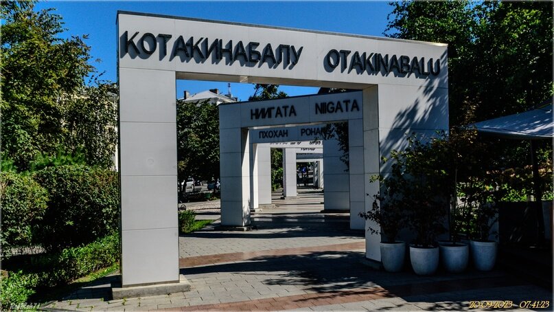 Вот такие арки установлены в нём , с названиями городов Побратимов Владивостока. Сквер городов-побратимов появился в 2010 году..