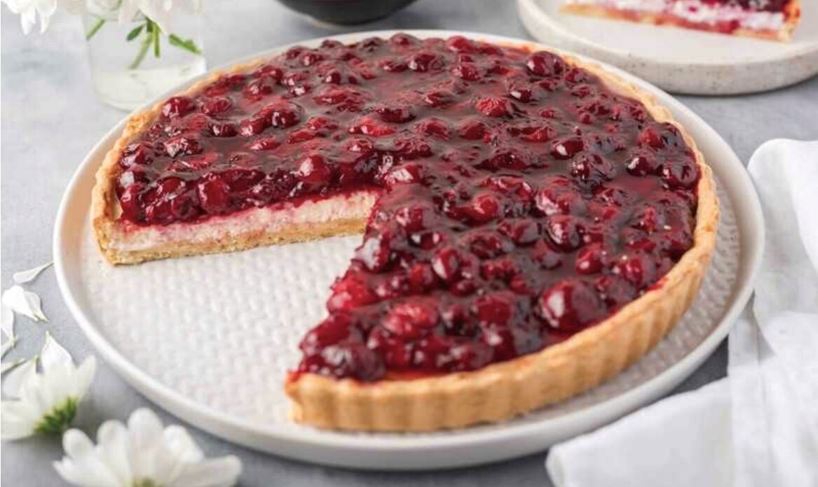 Я люблю тарты! Готовятся быстро, вкусные и размер небольшой. Сегодня поделюсь с вами рецептом торта с заварным кремом и вишней. Форма диаметром 16 см Для теста Масло размягченное - 45 грамм Мука - 80 грамм Разрыхлитель - 1 грамм Сахар - 25 грамм Яйца - 25 грамм Щепотка соли Заварной крем Молоко 3,2 - 130 грамм Сахар - 35 грамм Крахмал кукурузный - 10 грамм Желтки - 30 грамм Масло сливочное - 12 грамм Стручок ванили - 1 шт Ягодная начинка Вишня - 200 грамм Сахар - 30 грамм Желатин - 6 грамм ( + 36 гр воды) Тесто Размягченное масло с сахаром взбить до пышности и посветления. Добавить яйца, взбить до полного объединения. Простить в полученную смесь муку с крахмалом. Замесить тесто лопаткой, обернуть пищевой пленкой и убрать на 40-50 мин в холодильник. Пока тесто отдыхает подготовим начинки Заварной крем В молоко добавить семена ванили и стручок, нагреть молоко (не кипятить). Желтки смешать с сахаром и крахмалом, перемешать. Влить тонкой струйкой молоко ( постоянно помешивая). Добавить