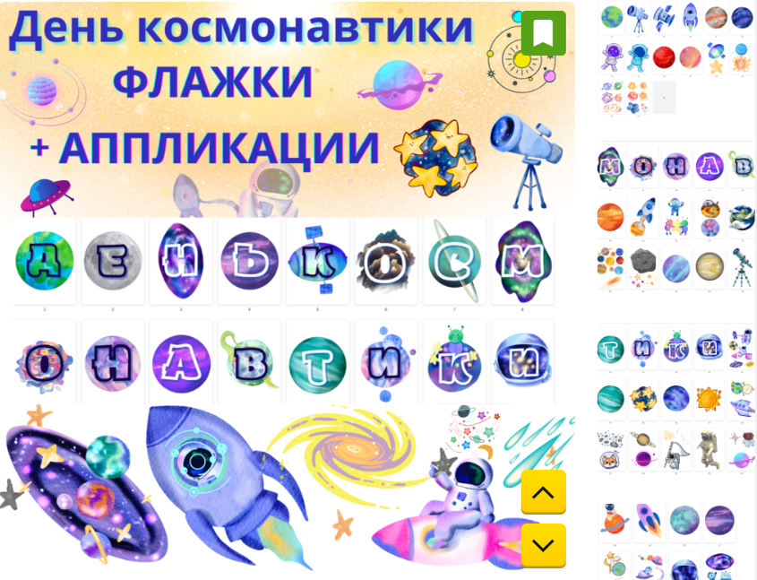 Флажки гирлянда в виде планет, космоса, спутника, скафандра на "День космонавтики" 12 апреля + аппликации. Для украшения класса. День первого полёта человека в космос. 16 страниц с листами-буквами "день космонавтики". Всего 66 листов: с буквами и аппликациями. pdf A4