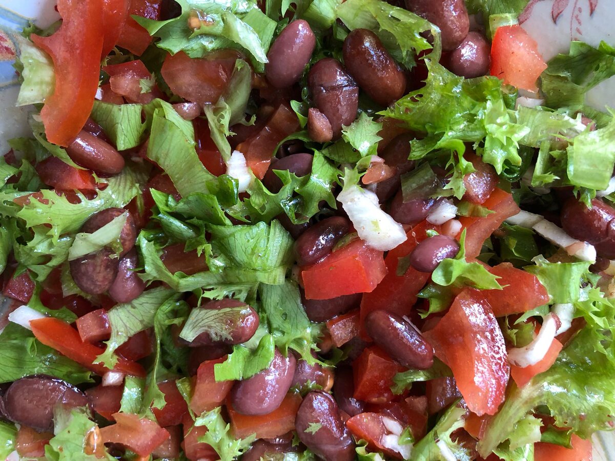 Итак, сегодня расскажу, как готовлю ОЧЕНЬ ПРОСТОЙ, ПОЛЕЗНЫЙ САЛАТ, всего за 5 минут, схожий с салатами Греции, Италии и других стран, с благоприятной для долголетия кухней. Такие очевидные, простые до банальности ингредиенты, обеспечивают вам крепкое здоровье, легкость и качественную жизнь. ФАСОЛЬ–основа этого салата. В данном случае, я не перебарщиваю с ингредиентами, это ни к чему, в моем случае (я худею :)). Здесь уже есть все: растительные белки (фасоль), ненасыщенные (полезные) жиры (оливковое масло) и углеводы (растительные: зелень, помидоры), полезные не только для здоровья, но и для вашей стройности. Это основа умного конструктора долгожителей), в котором уже есть все очень важное! Вы можете его взять за основу, например, добавить в него сыр (фетакса, козий, овечий, пармезан), сладкий перец, немного орехов, еще больше насытив его полезными ингредиентами, но , при этом,