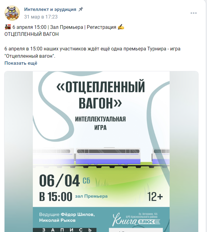 А завтра библиотека приготовила для нас еще одно развлечение, которое