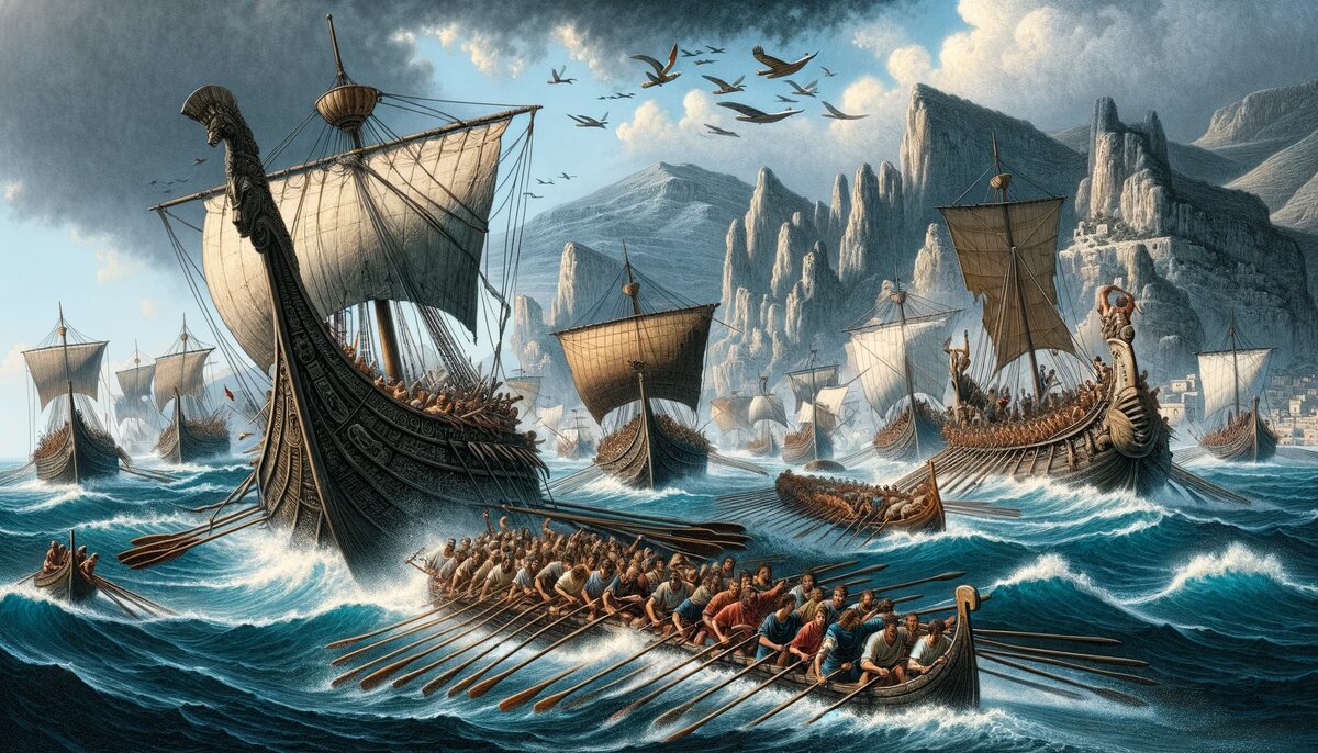 Волнующее Начало Пунических Войн Однажды, в далеком 260 году до нашей эры, морские волны у Липарских островов стали свидетелями события, которое войдет в историю как первое морское столкновение между двумя великими державами древности – Римом и Карфагеном. Это сражение открыло новую страницу в морских баталиях Первой Пунической войны, проложив путь к величию и падению империй. Неожиданный Оборот Событий Под командованием старшего консула Гнея Корнелия Сципиона, римская эскадра из 17 кораблей впервые отправилась в море, чтобы бросить вызов морскому господству карфагенян. Но в гавани Липара их подстерегала засада: 20 карфагенских кораблей, возглавляемых хитрым Боедесом, застали римлян врасплох. Результат был плачевным для неопытных мореплавателей Рима – все их корабли были захвачены, а сам Сципион взят в плен. Первые Шаги Римского Флота До этого события римляне едва ли могли похвастаться морскими победами, ведь их флот был только на стадии становления. Стремление оспорить морской контро