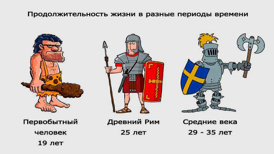 В древности и средневековье средняя продолжительность жизни человека была значительно ниже, чем в наше время. В среднем, люди редко проживали за пределами 30-40 лет. Это было связано с низким уровнем медицинских знаний, неполноценным питанием, зачастую войнами, эпидемиями и неблагоприятными условиями труда. Большинство людей умирали от инфекционных заболеваний, голода и других факторов, которые сегодня лечатся или предотвращаются.
