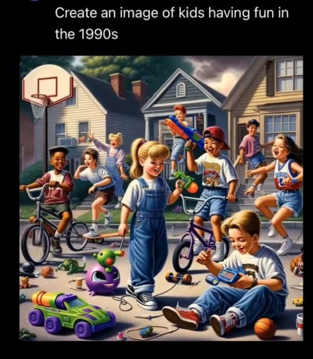 Искусственный интеллект прочно вошел в нашу жизнь. Разные чувства к нему испытываю, а вот сегодня искренне поблагодарила. В интернете увидела ролик, в котором искусственный интеллект изобразил детей в разные исторические периоды. Конец 19 века, начало 20-го, дети 50-х, 60-х, 70-х годов. Разные эпохи отражены в костюмах ребят, в городских пейзажах, играх и атрибутах, которые окружают детей. Но всех их объединяет радость на лицах, яркие эмоции и экспрессия групповой игры, интерес к окружающим друзьям. Дети 80-х, 90-х все еще счастливы, играя вместе и выражая заинтересованность друг в друге. Дети 2000-х еще улыбаются, но уже закрыли глаза и сосредоточились на звуках в наушниках. А вот в 2010-х совсем другая картинка: группа ребят отрешенно смотрящих в свои телефоны. Уже нет единой игры, нет улыбок. 2030-й год: ребят, стоящих на городской площади и группой назвать сложно, каждый сам по себе, глаза закрывает маска для виртуальной игры. Жуткую картину нарисовал ИИ в 2050 году: на лицах детей